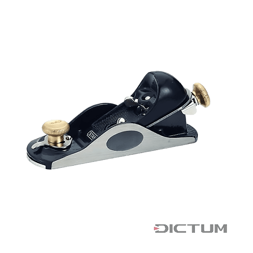 Blockhobel aus Grauguss mit verstellbarer Maulöffnung. Klappenklemmung mittels Exzenterhebel. Laterale und Tiefenzustellung. Japanische Hobeleisen (Nr. 718070) als Option lieferbar.