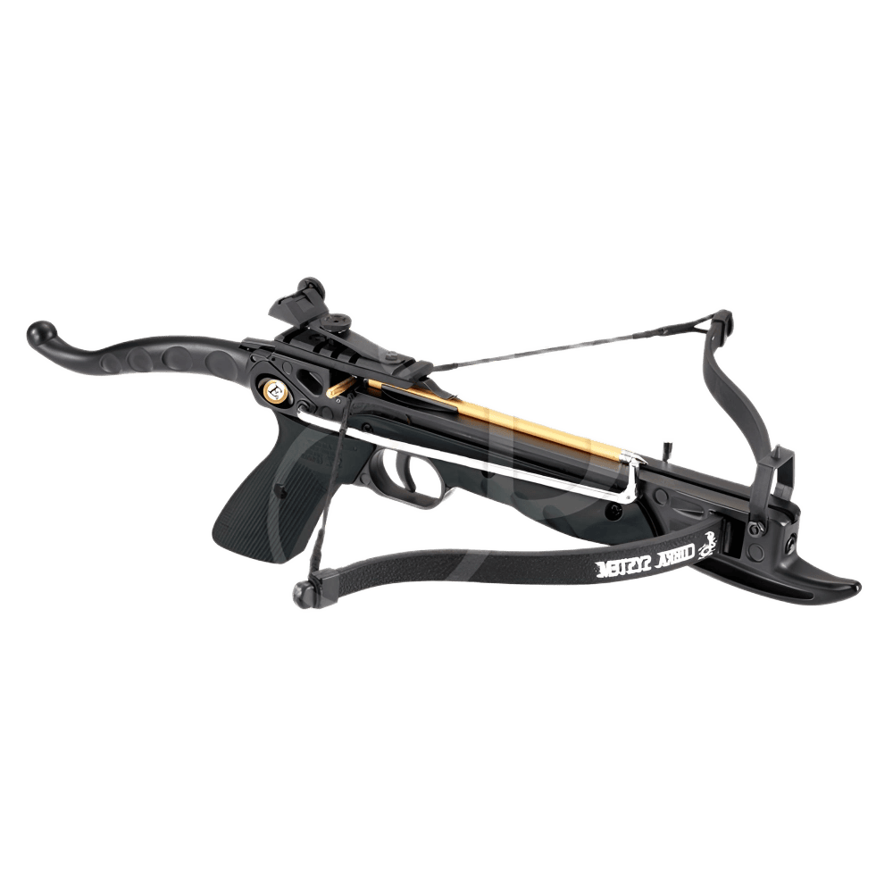 Kompakte Aluminium Pistolenarmbrust mit 80 lbs Zuggewicht, integrierter Spannhilfe und hoher Schussleistung. Ideal für Freizeit, Training und präzises Zielschießen.
