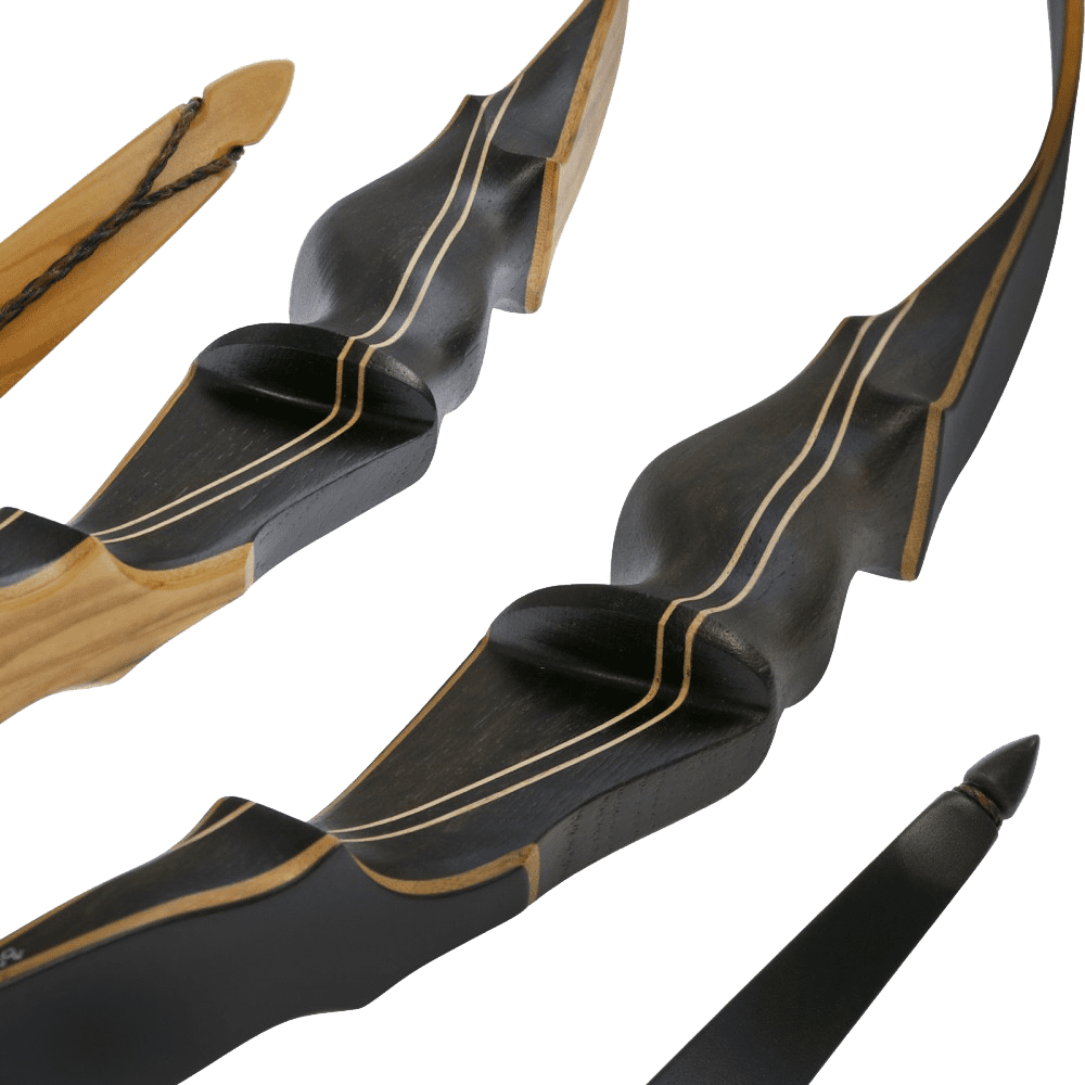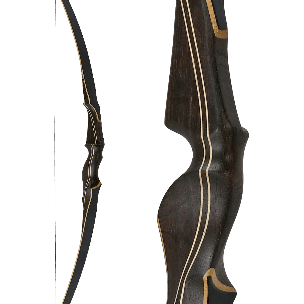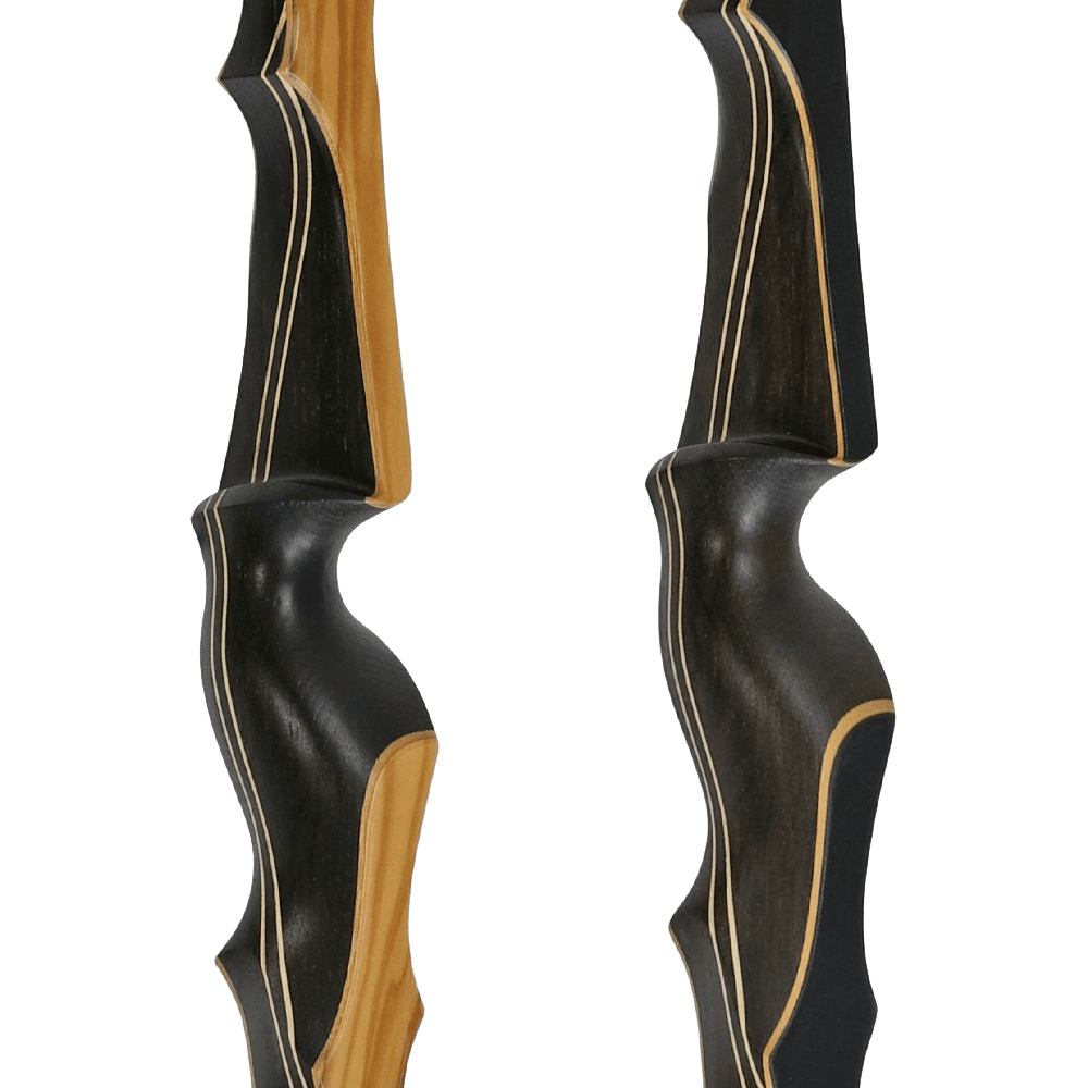 Der Recurvebogen „Smoked Amber“ aus dem Hause Jackalope hat seinen Namen völlig treffend erhalten, da das Mittelstück aus Räuchereiche und Mycarta gefertigt ist. Die beiden Materialien sind dunkel und wirken sehr edel und sind durch zwei feine Streifen getrennt, welche einen schönen Kontrast bilden. Die Wurfarme können aus Bambusholz mit entweder schwarzem Finish oder speziell gemaserten Olivenholz-Finish bestehen. Diese Kombination macht den Bogen perfekt und wunderschön.